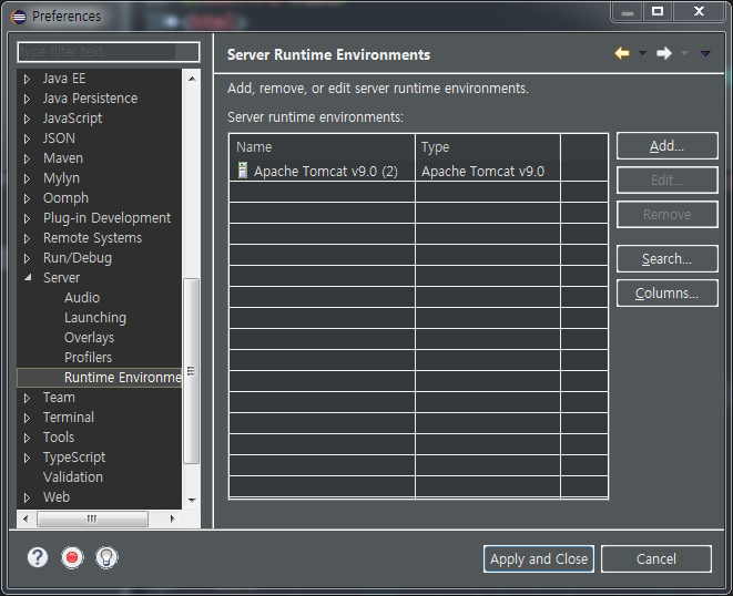 오류가 나는 톰캣 서버를 지우고(Remove) 다시 설치한다(Add).