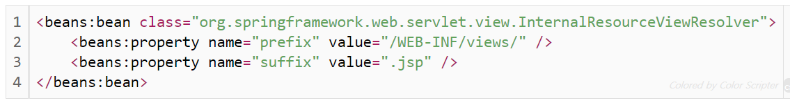 서블릿 설정으로 prefix(접두사)와 suffix(접미사)를 붙여주는 역할을 담당한다. 즉, 우리가 일일이 전체경로와 .jsp를 붙이지 않아도 되도록 도와준다.