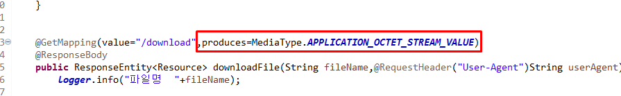 다른 값이 들어올 경우 org.springframework.web.HttpMediaTypeNotSupportedException을 발생시킨다.
