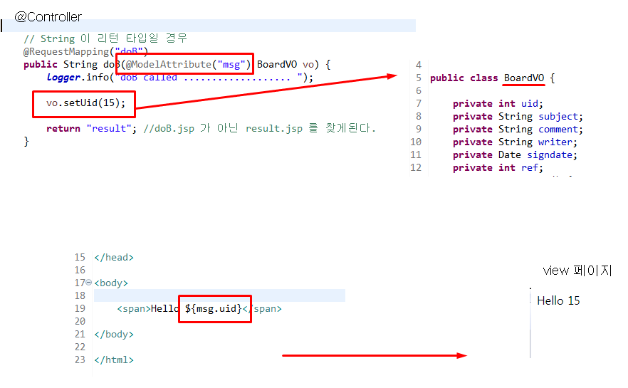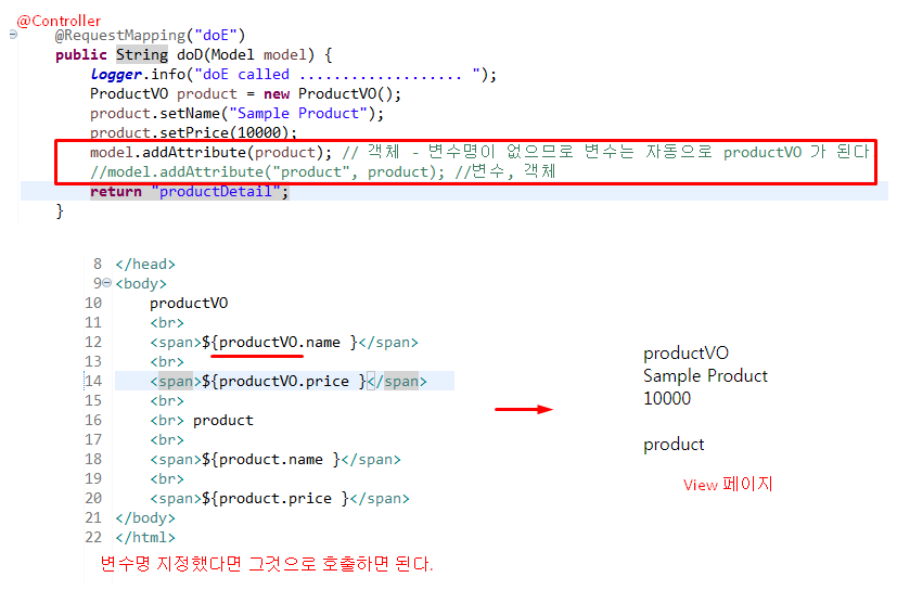 - 변수명 설정하고 값을 타입을 정해 뷰페이지로 파라미터값을 넘긴다.