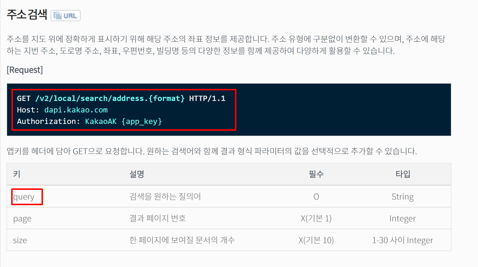 https://developers.kakao.com/docs/restapi/local 위의 사진은 이 url에 있는 '다음 api참고문헌'이다. 하지만 예제나 샘플이 없어 이해하기 어려웠다.