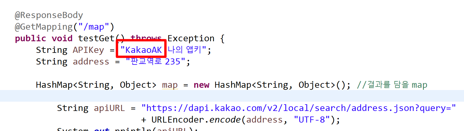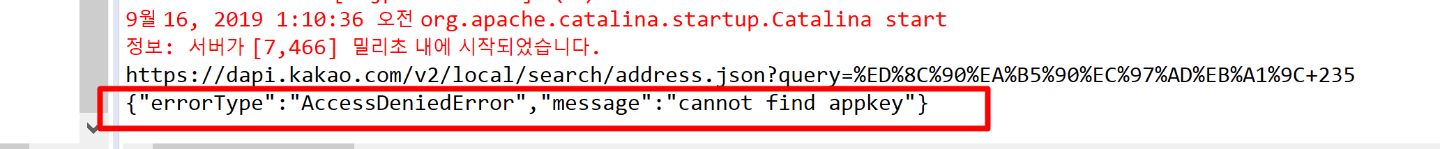 [Spring - 기록] {"errorType":"AccessDeniedError","message":"cannot find appkey"} ㅡ>> 다음 앱키가 먹히질 않을 때