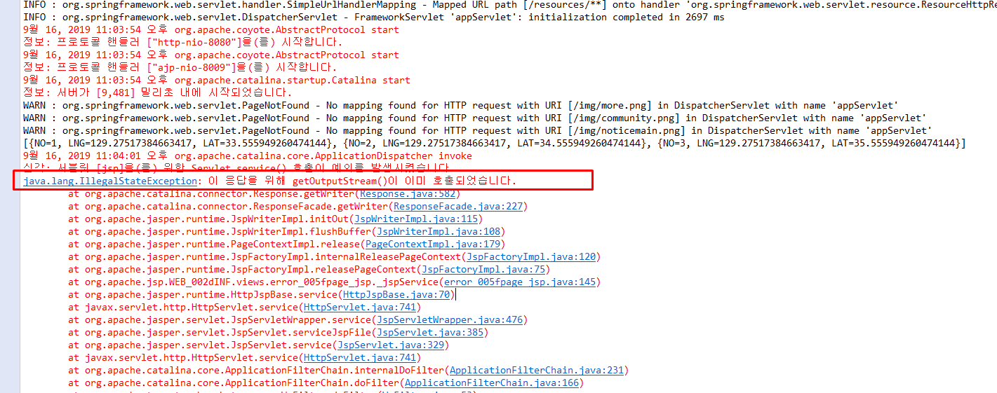 [jQuery - 오류] "getOutputStream()이 이미 호출되었습니다."