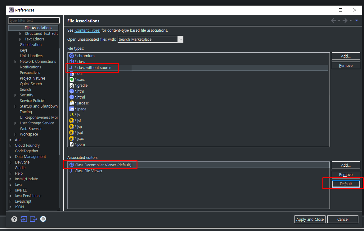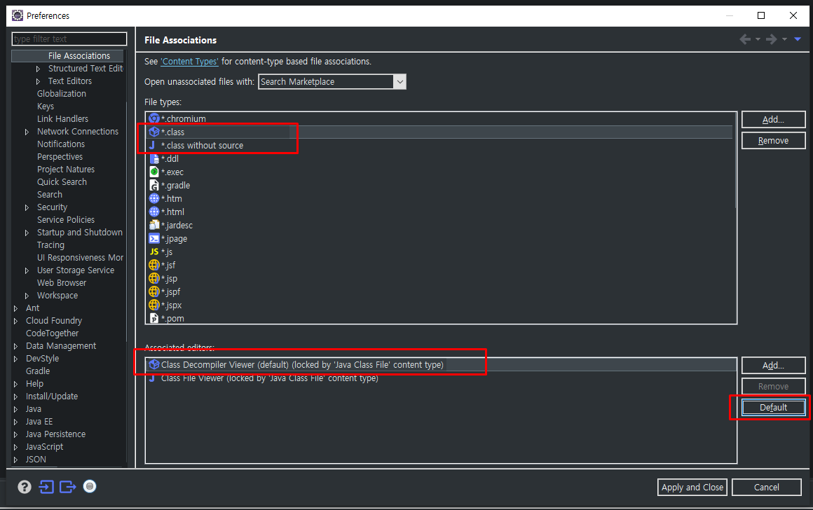 설치후 아래와 같이 Default로 해주면 클래스 파일을 읽을 수 있다. 다만 수정은 안된다......