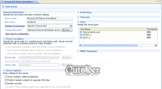 그럼 서버설정에 대한 내용이 위와 같이 나타난다.