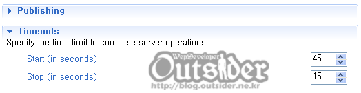 Timeouts부분을 보면 Start에 대한 Timeouts에 대한 시간이 기본값인 45초로 설정되어 있는 것을 볼 수 있는데, 너무 오래해두면 잘못되었을때 무장적 기다릴수도 있지만 정상적인데 필요하다면 여기서 시간을 늘려주면 된다.