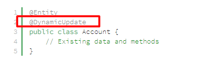실제로 엔티티에서 @DynamicUpdate를 사용할 때 Hibernate는 업데이트에 캐시 된 SQL 문을 사용하지 않습니다. 대신 엔터티를 업데이트 할 때마다 SQL 문이 생성됩니다. 이 생성 된 SQL에는 변경된 열만 포함됩니다.