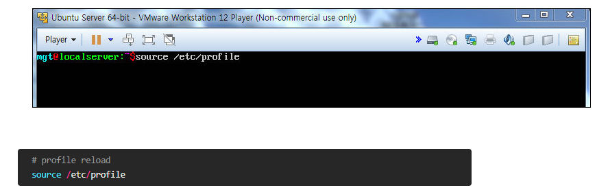 다음으로 명령어를 실행시켜 profile 파일을 reload 한다.