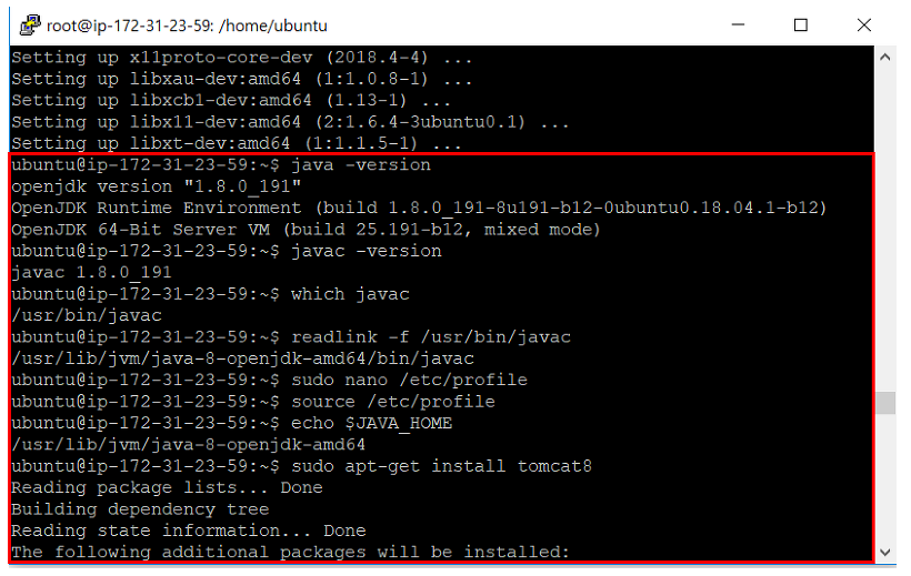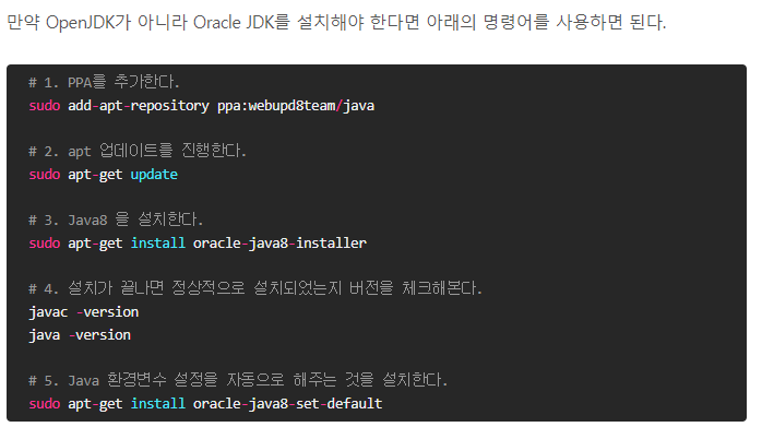 서버 재시작 후 echo 명령어를 이용해 환경변수를 확인한다. 위 사진처럼 나타나면 환경변수 설정이 정상적으로 된 것이다. 여기까지가 우분투에 자바를 설치하는 과정이다.