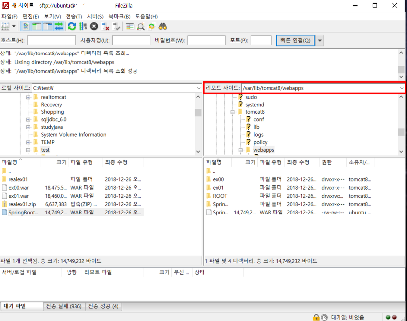 파일을 전송 한 후 https://본인의 인스턴스ip:8080/프로젝트명