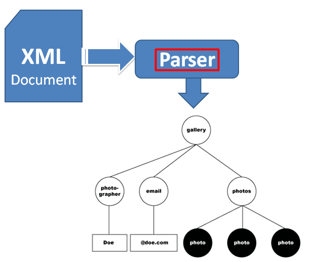 ex) XML parser는 XML 문서가 XML 문법에 맞게 작성되었는지 검사 - XML 문서를 읽고 해석하여 태그명, 속성명, 속성값 및 엘리먼트 내용을 분리해 주는 프로그램