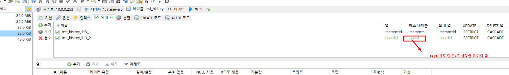 다만, 추측은 가능했다. 저 위의 오류 발생 당시에도 테이블 구조는 분명 기존의 테이블들을 향해 있었다.