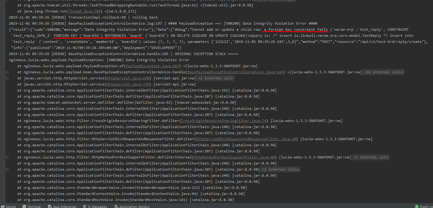 결론은 DB의 잘못된 외래키 설정이라 보면 되겠다.