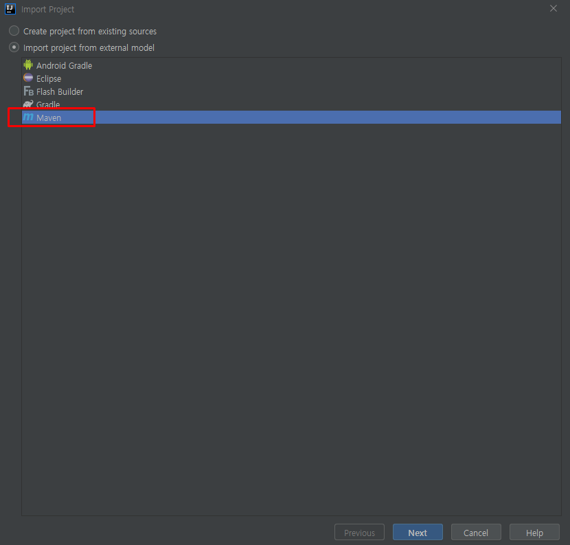 ③ 일단 저는 Maven 프로젝트로 설정된 프로젝트를 Import할 것이기 때문에 Maven을 선택한다. 그리고 "Next"를 클릭.