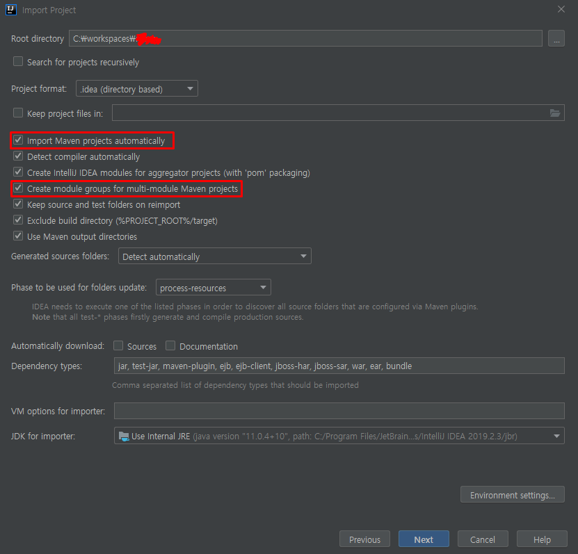 ④ 두가지의 항목이 체크가 안되어 있을 경우 체크를 해준다. "Next" 클릭
