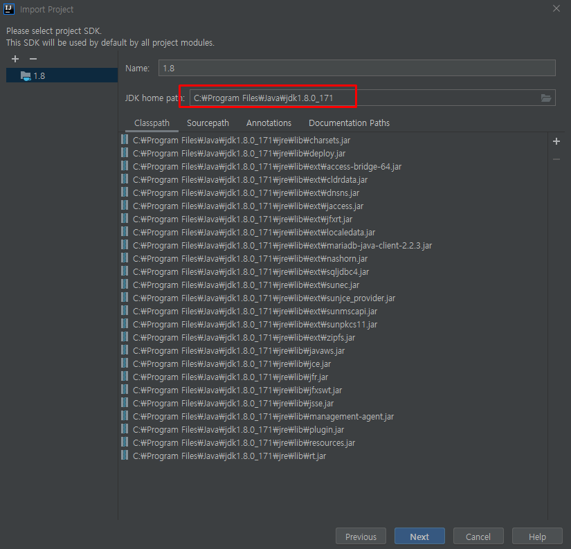 ⑥ JDK는 설치가 되어있다면 자동으로 잡힐 것이다. "Next" 클릭
