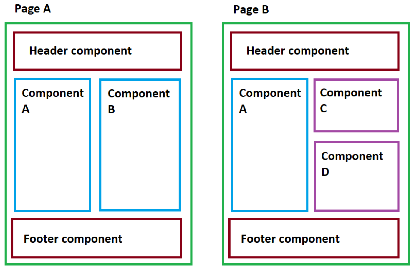 예전부터 개발자들은 지속적으로 웹서비스와 개발방식을 발전시켜왔다. 지금은 템플릿 개념(예를들면 handlebars)을 지나 컴포넌트(아래에 그림 참조) 개념인 React.js, Vue.js, Angular2 등 이렇게 다양한 라이브러리와 프레임워크가 등장했고 아직도 자바스크립트는 발전해가고 있다.