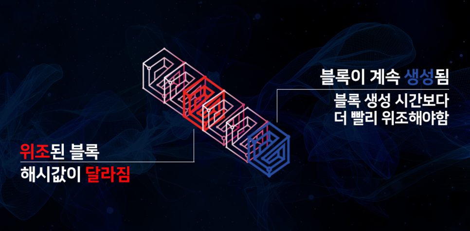 따라서, 블록체인 네트워크보다 빠른 연산력으로 위조 해야하기 때문에 현재 해킹 기술로는 현실적으로 위조 및 배포는 불가능!