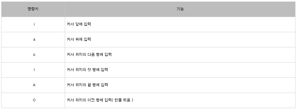 - 입력 모드로 ( i 하나로도 충분하지만.. 이런 것들도 있다고 함. )