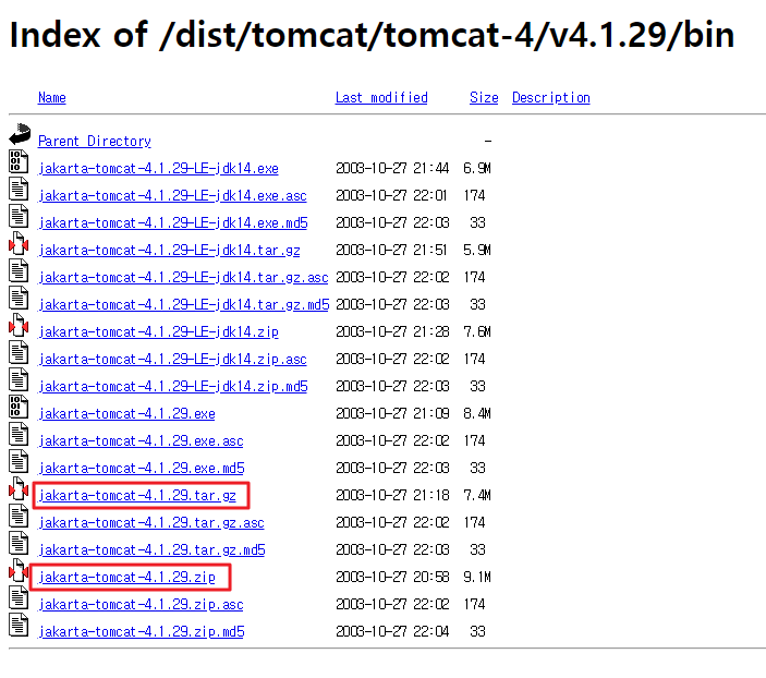 - 이 포스팅에서는 예제로 톰캣 4.1.29 버전을 다운로드 할 예정.