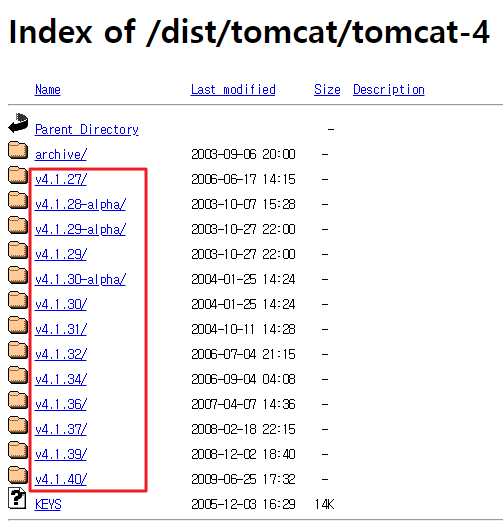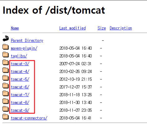 - 상단의 톰캣 아카이브 사이트로 접속.