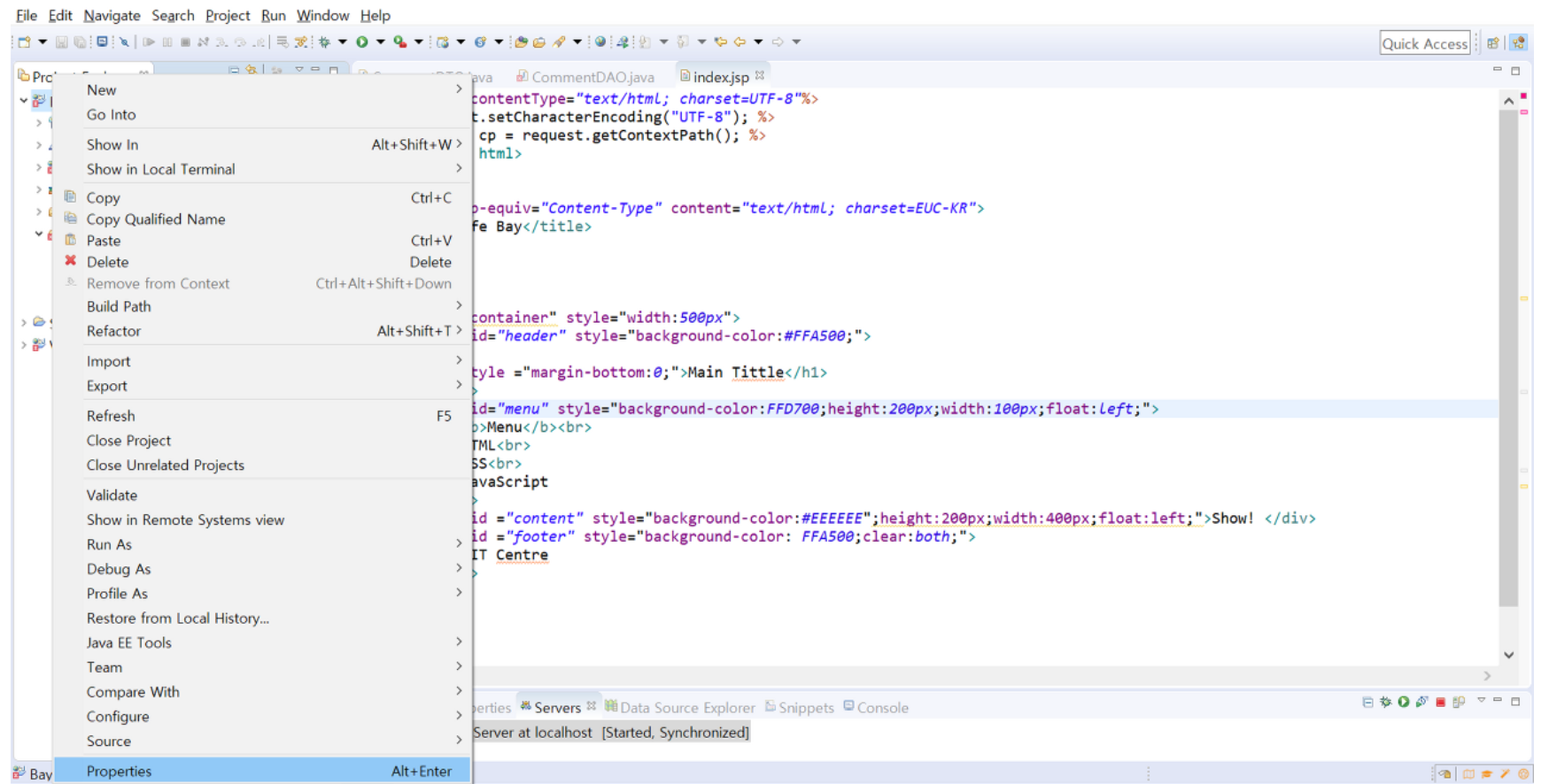 해결단계 ② 프로젝트 우클릭 → Properties