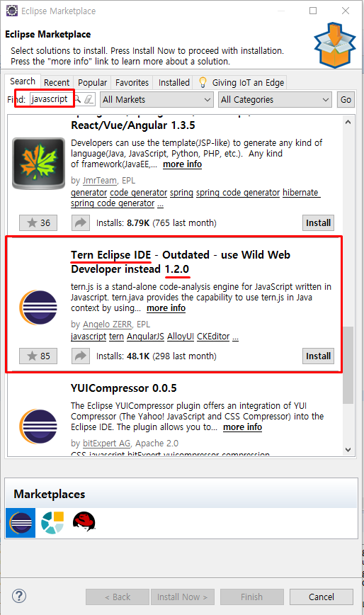 근데 javascripit만 쳐도 많은 플러그인들이 뜨기 때문에 꼭 저것이 아니라도 된다.