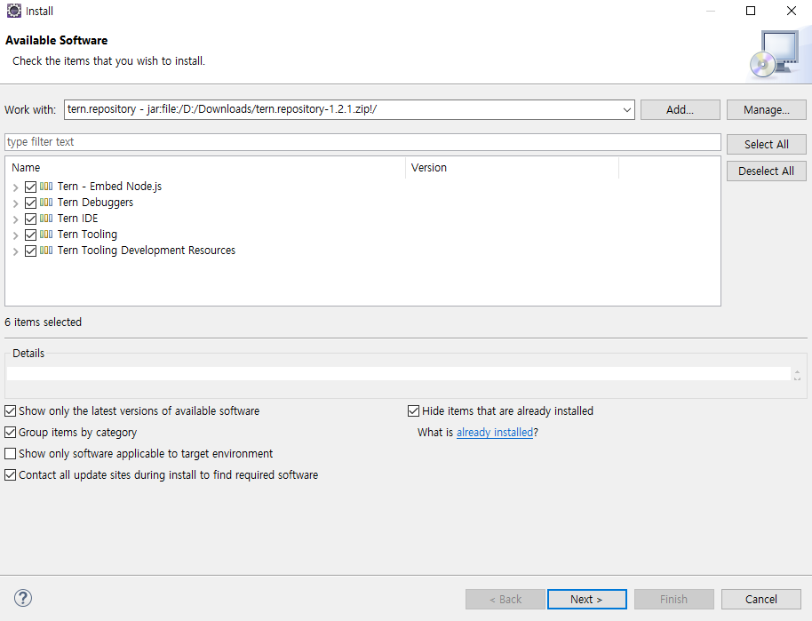 파일을 추가했으면 설치할 항목을 모두 체크하고 Next를 눌러 설치를 진행하면 됩니다.