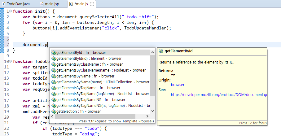 [이클립스 - Eclipse plugIn - (6) ] javascript code assist : 컨트롤 + 스페이스바 누를 때 자바스크립트도 어시스트 창 띄우는 기능.