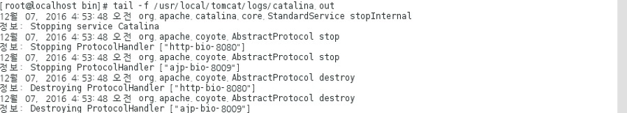 tail -f /usr/local/tomcat/logs/catalina.out 을 실행시킨 상태에서, 새로운 창을 열어 톰캣 서버를 구동시키면, 실시간 로그를 확인할 수 있다.