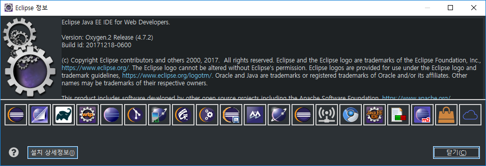 Eclipse 정보 창이 나옵니다.