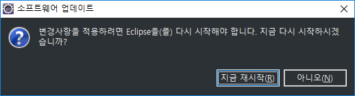 변경사항을 적용하기 위한 재시작을 하라는 창이 뜹니다.