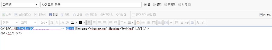 새글쓰기를 한 후 다운로드 받은 사이트맵 파일을 추가 합니다.