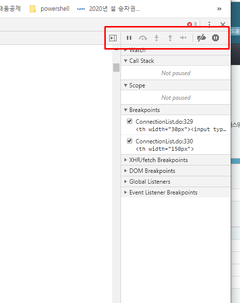 나는 디버거 탭에서는 변수탭을 주로 쓴다.