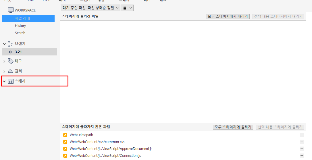 ( 참고로, 현재는 보이는 화면에는 스태시 저장 안하였다. 현재 프로젝트 작업중이라 그냥 스크린샷만 찍음 )