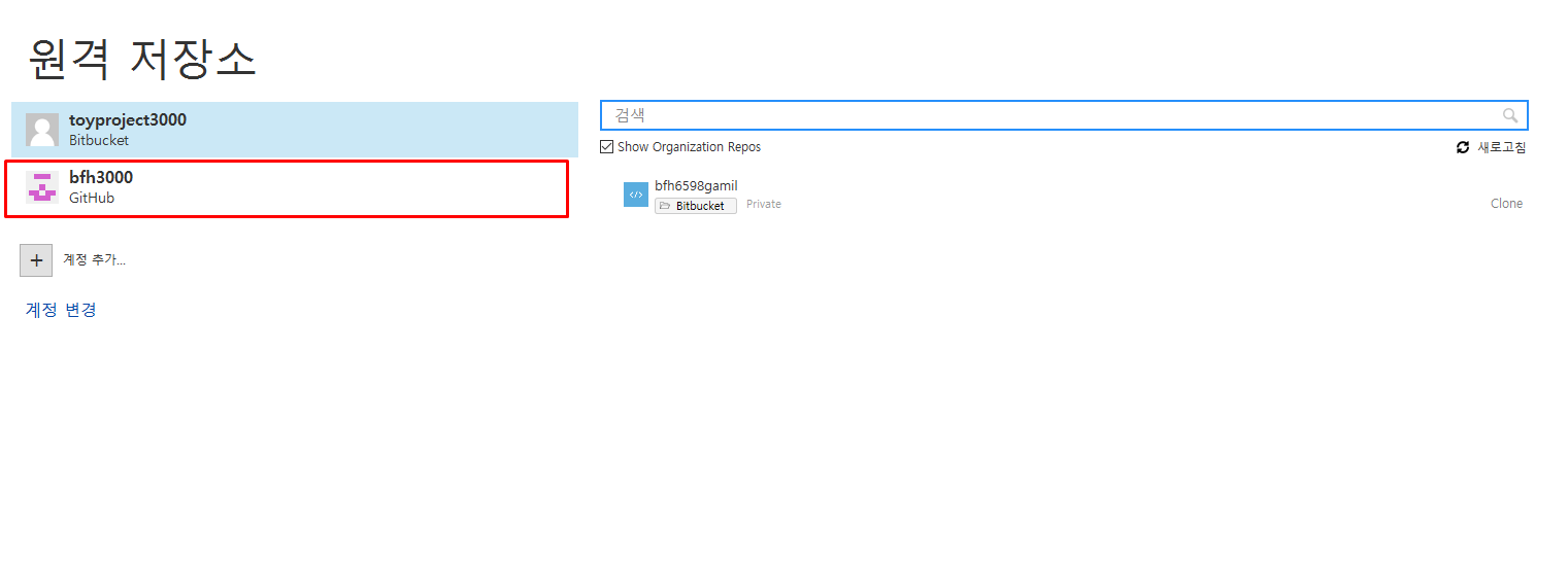 비트버킷에도 아이디가 있지만 깃허브도 계정을 추가하면 따로 둘 다 쓸 수 있어 괜찮은 것 같다.