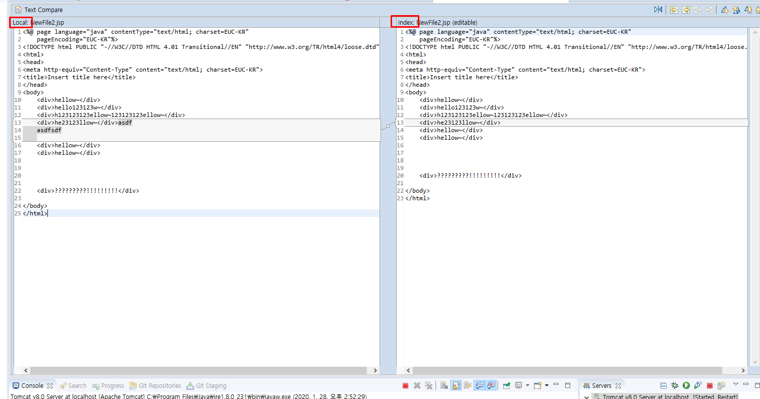 [Eclipse - 이클립스 - (4) ] [Local]_index와 비교하여 소스 고치기 : "Compare Current and Index" 자동 저장이 되는데 히스토리와 비교하여 고치는 기능