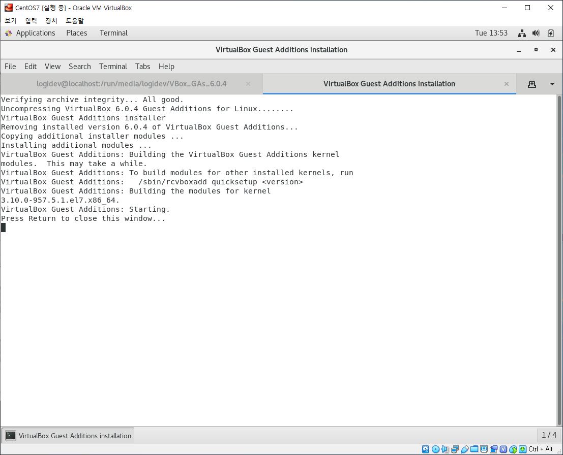 yum 으로 패키지 설치가 끝났다면 다시 게스트 확장 이미지를 실행시켜야 합니다.