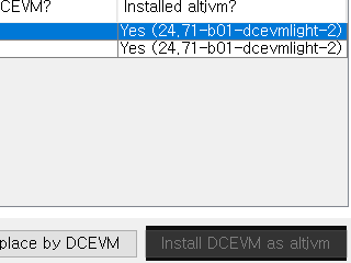 Java 선택 후 “install DCEVM as altjvm” 버튼 클릭