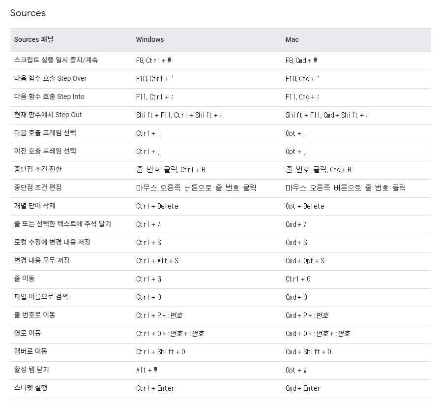 [Chrome - 단축키 - (3) ] Chrome 개발자 모드 - Sources 패널 단축키 정리.
