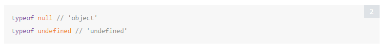 null은 '객체가 없음'을 나타냅니다. 실제로 typeof 연산을 해보면 아래와 같은 값을 반환합니다.