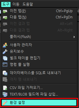 도구 메뉴를 클릭하여 환경설정으로 들어간다.