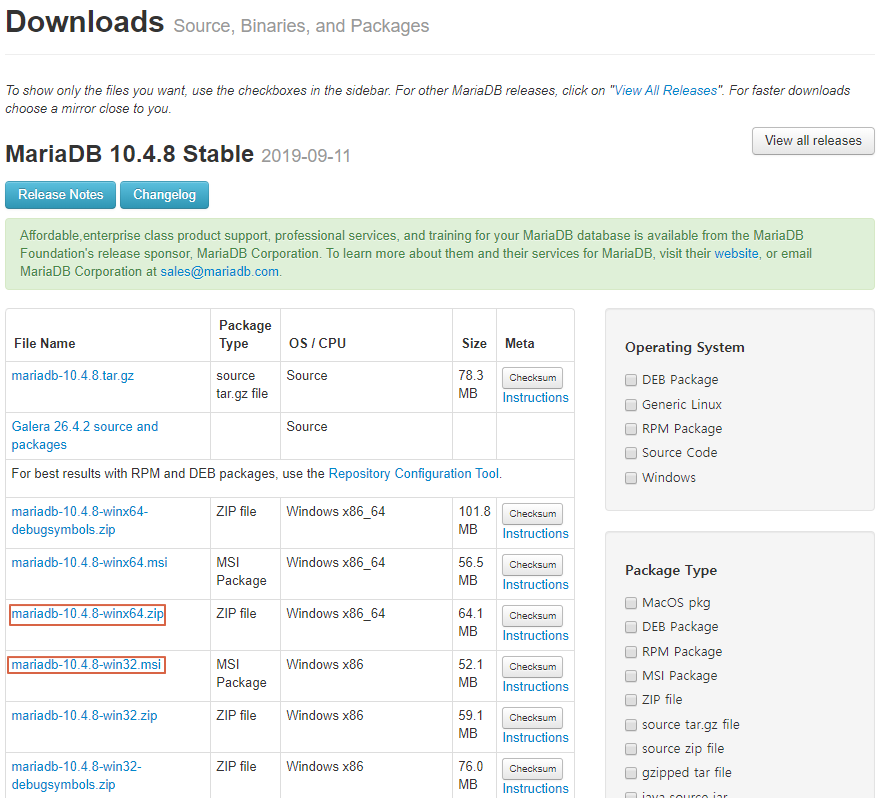 다운로드 페이지에서 마리아DB 최신버전을 다운로드 합니다.