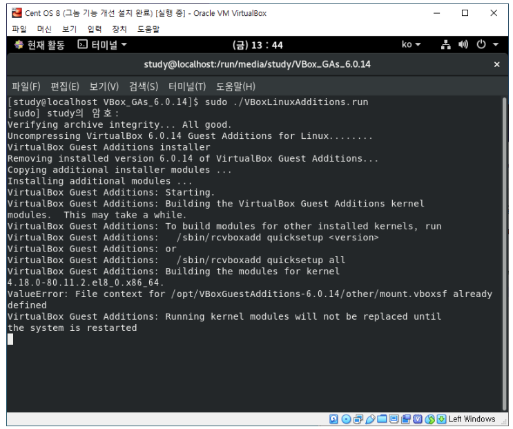$ sudo ./VBoxLinuxAdditions.run