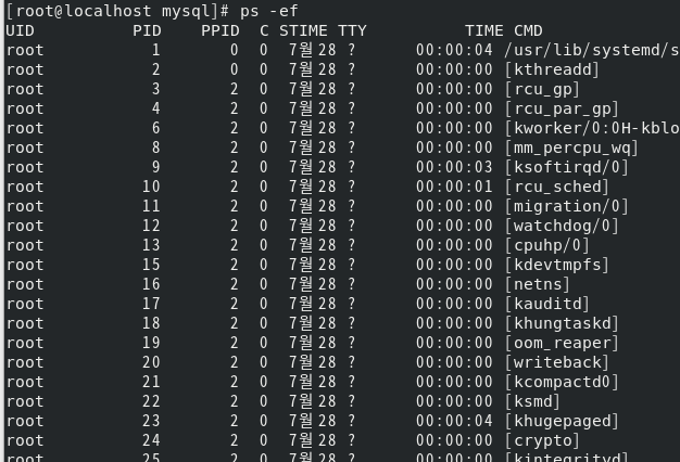 "ps -e -f"를 실행하면 나오는 화면이다.