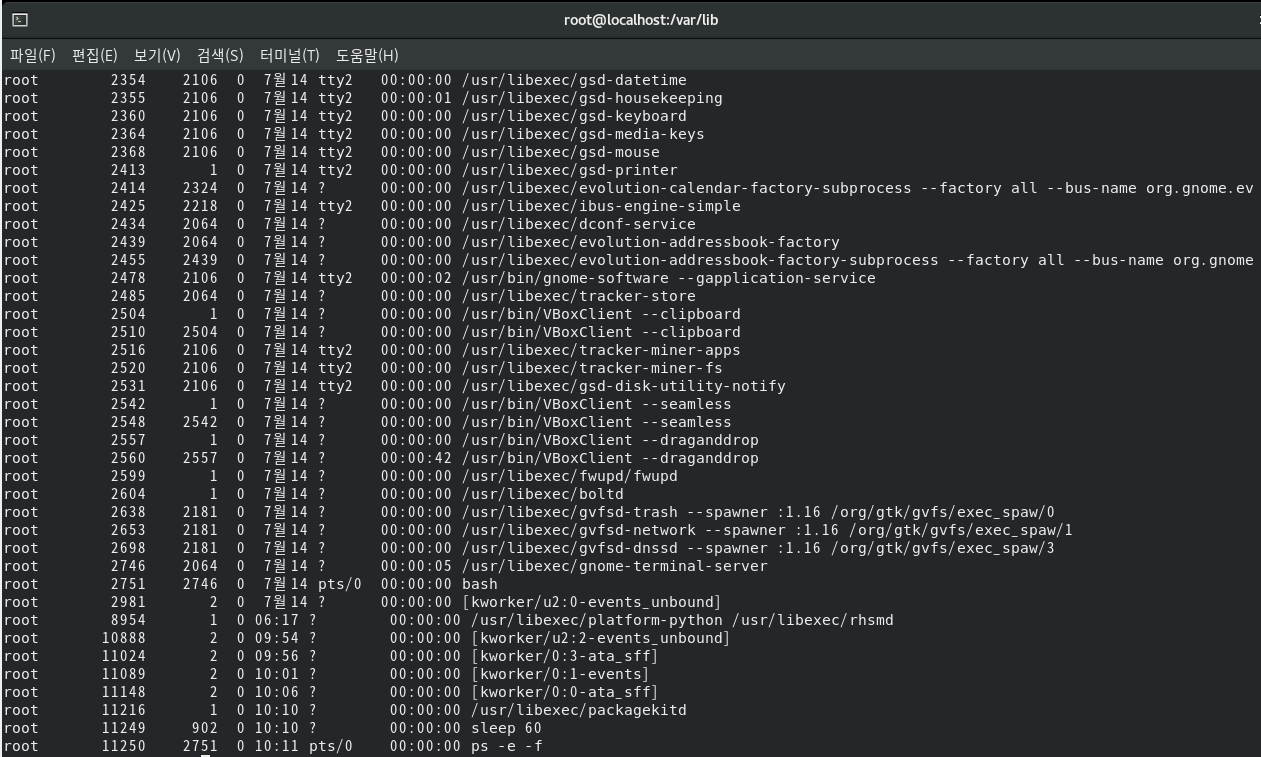 - e (All processes) : 현재 시스템 내에서 실행중인 모든 프로세스 정보를 출력