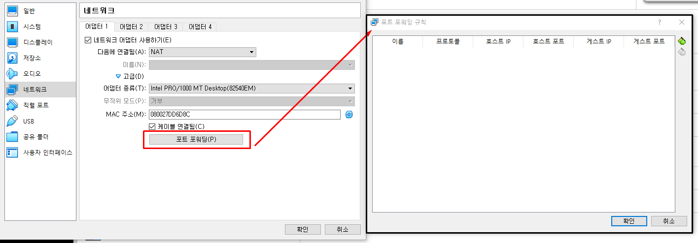 [VirtualBox] port forwarding (포트포워딩) 설정하기