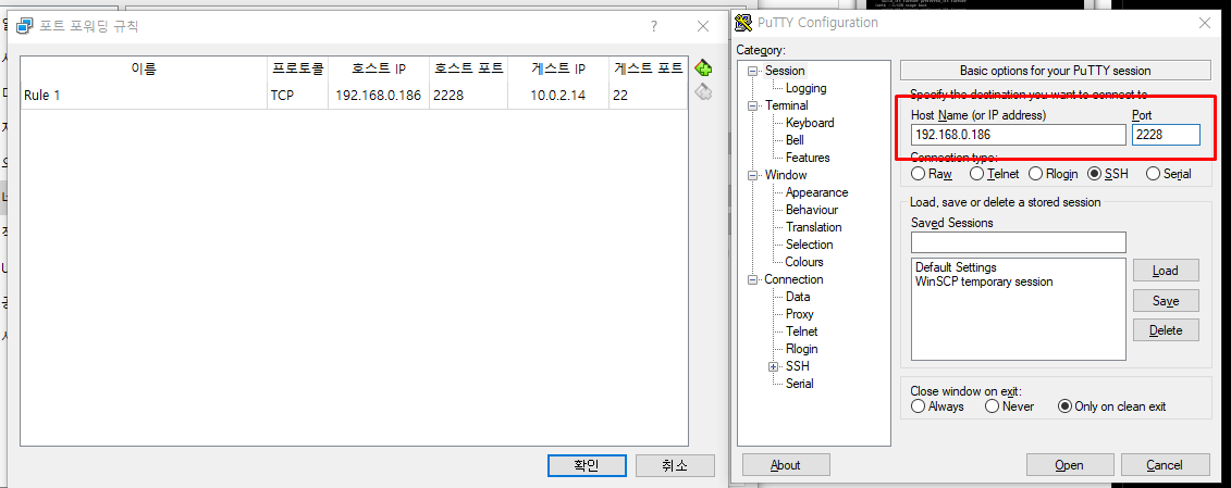 2. 아래와 같이 "Rule 1"을 완료하였다면, putty로 접속을 해본다.