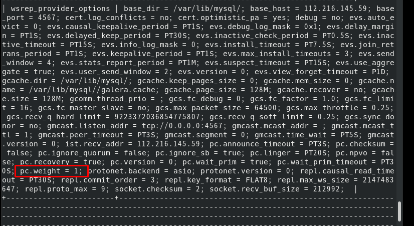 SET GLOBAL wsrep_provider_options='pc.weight=2';를 주면 투표권을 2개를 가져