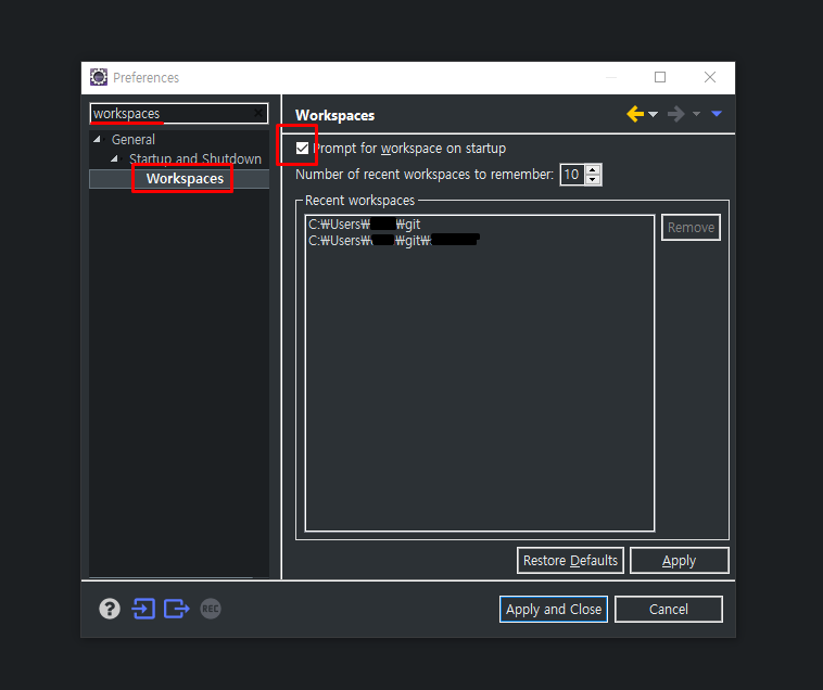 [Eclipse - 이클립스 - (7) ] Workspaces 시작 시 창 보기/닫기 설정 : 워크스페이스 관리